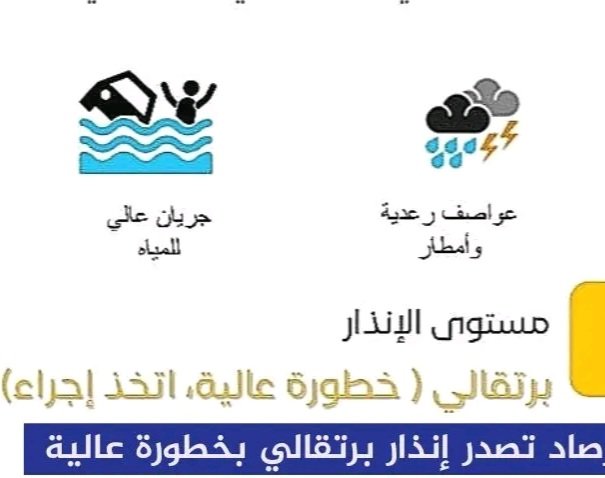 الهيئة العامة للأرصاد الجوية تصدر انذار (خطورة عالية)